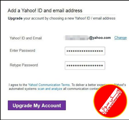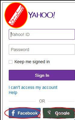 به پایین عکس توجه کنید.یاهو نوشته که شما میتوانید از آی دی های فیسبوک و گوگل برای ورود استفاده کنید.